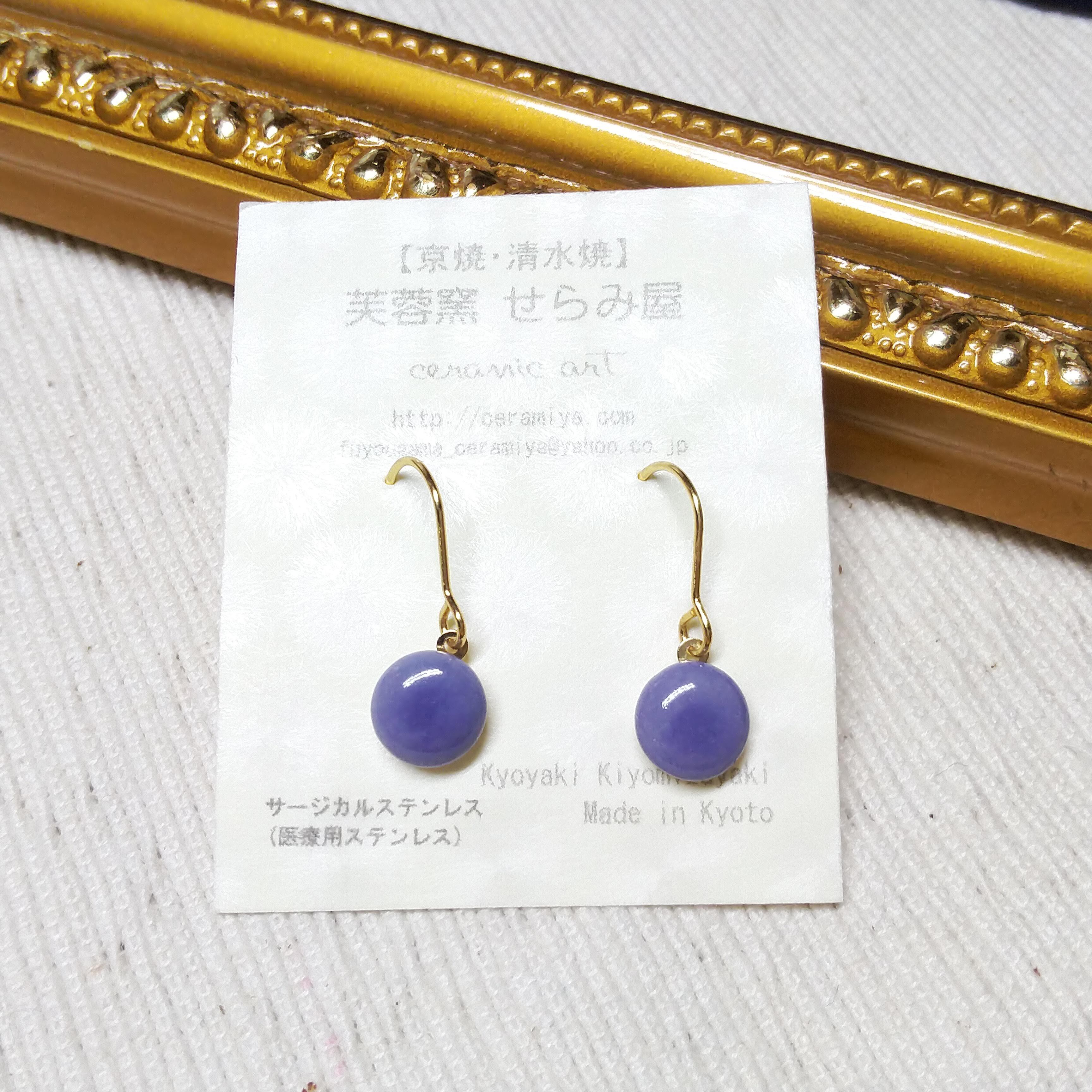 【たゆたう藤の花】ちいさな陶器ピアス(サージカルステンレス)