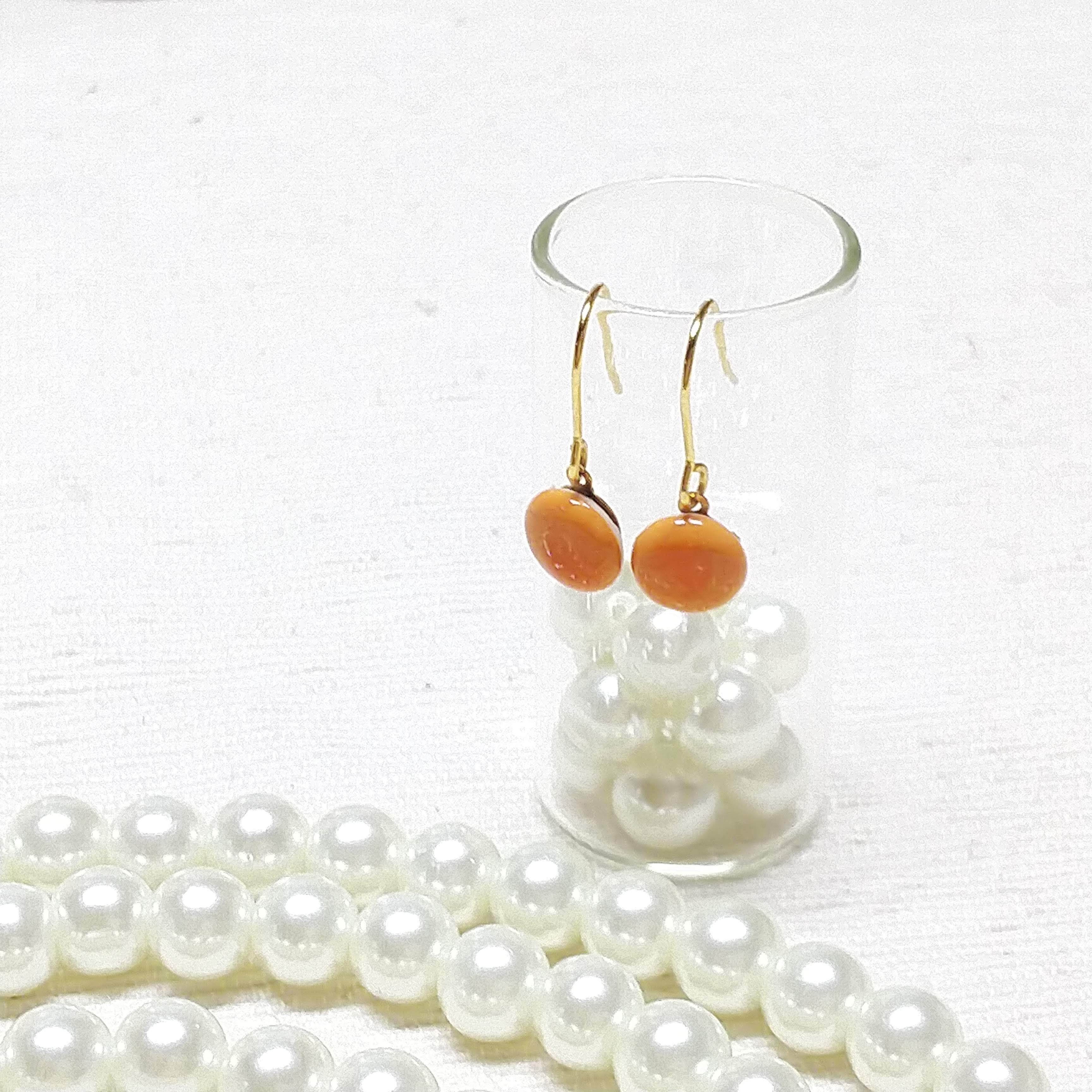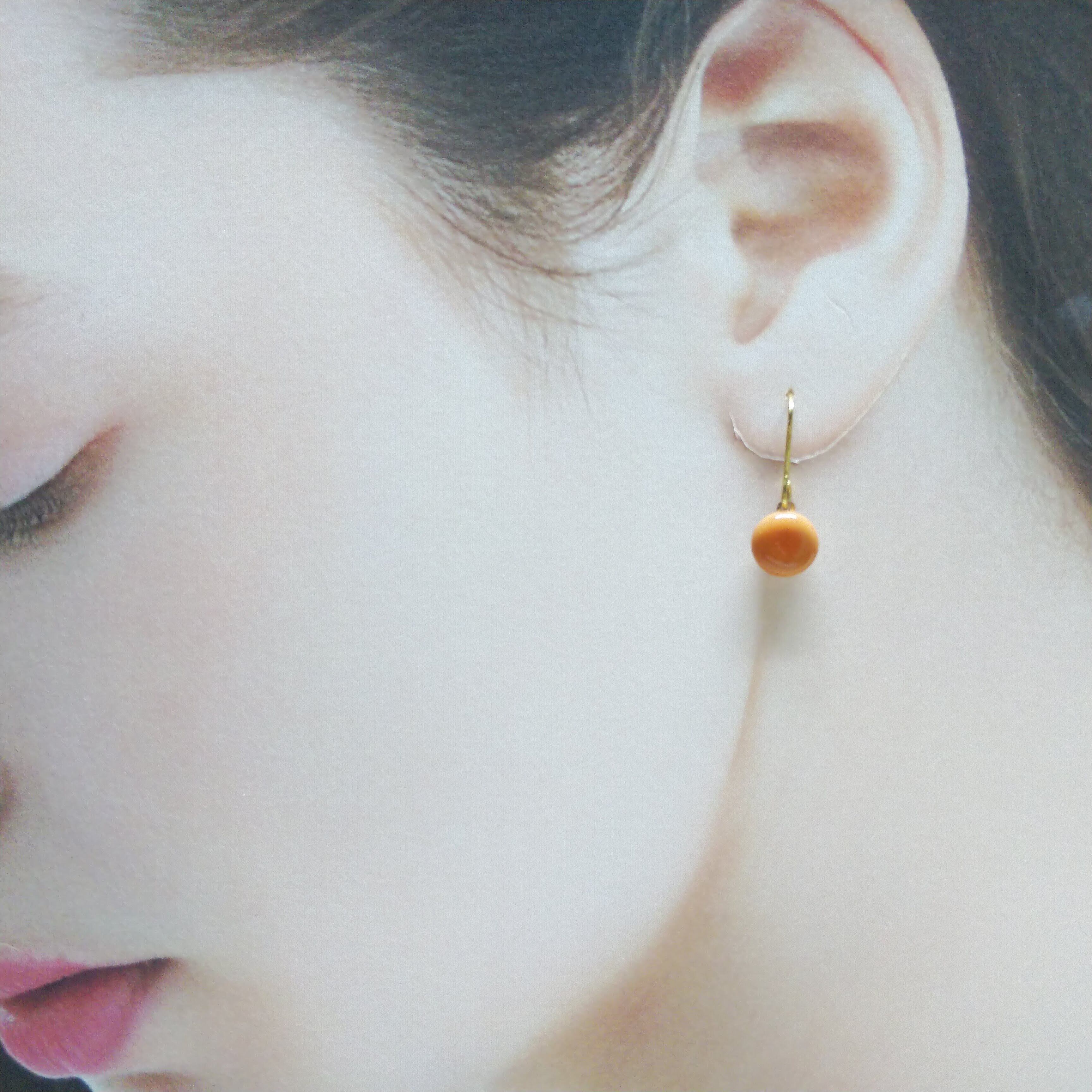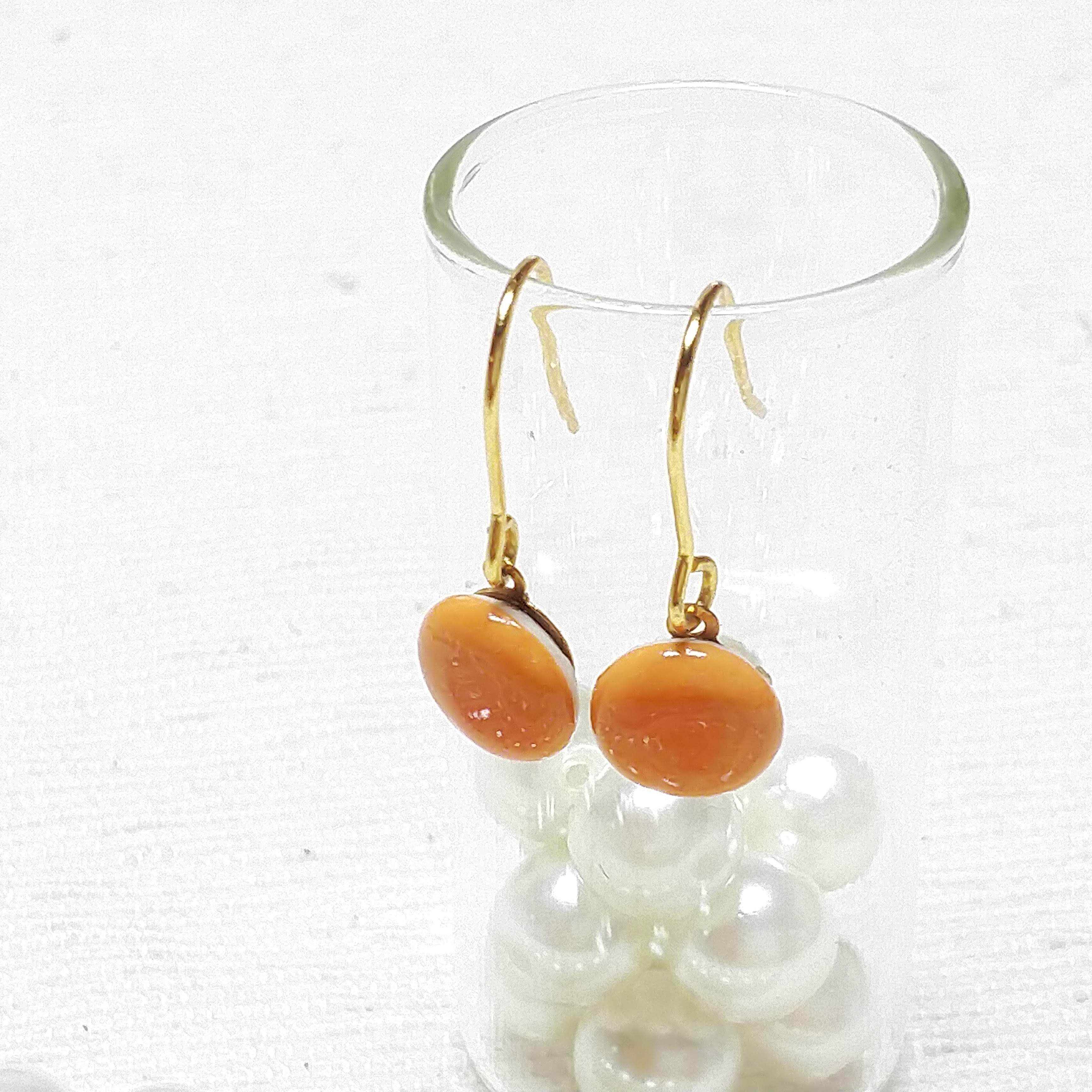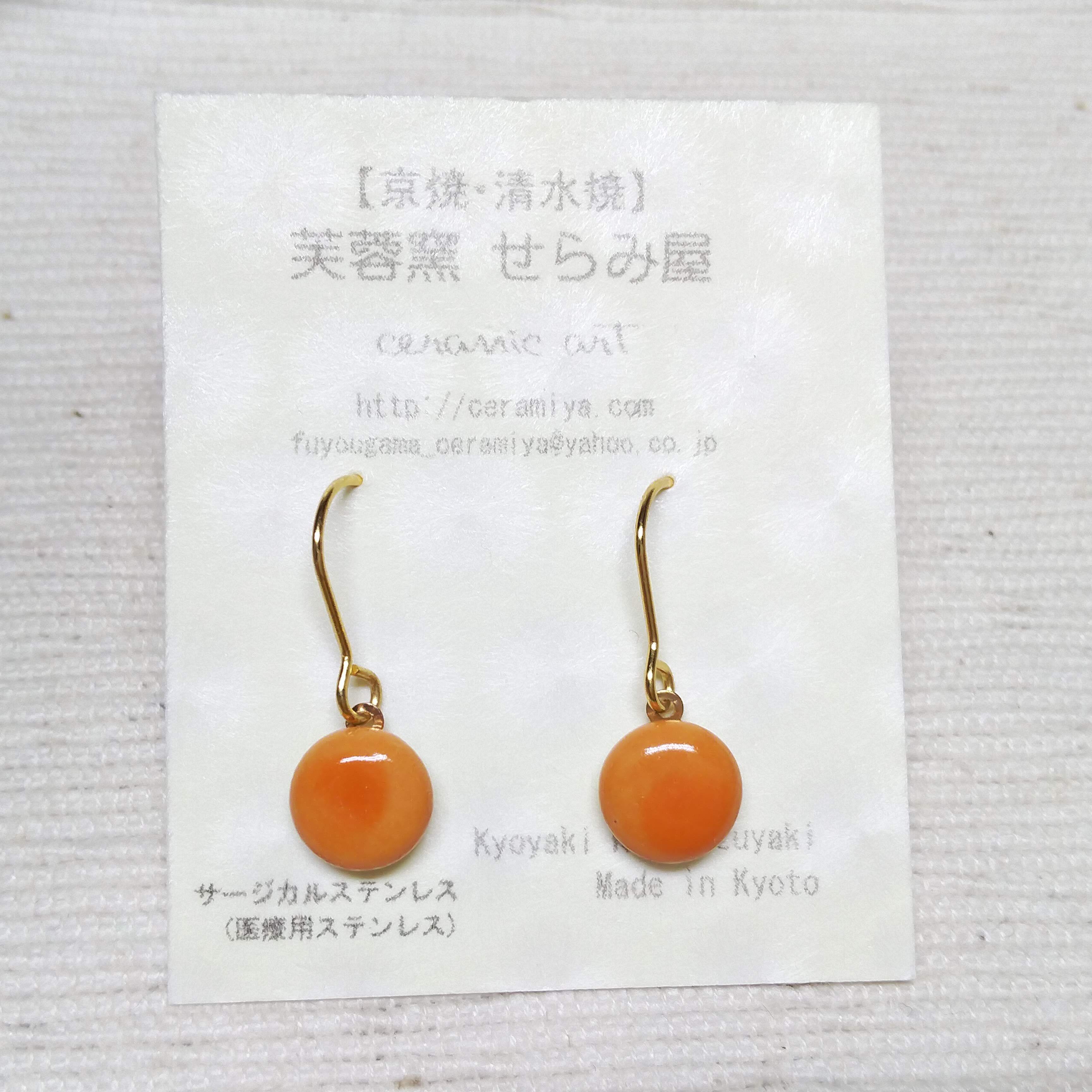 【爽やかなオレンジ】ちいさな陶器ピアス(サージカルステンレス)