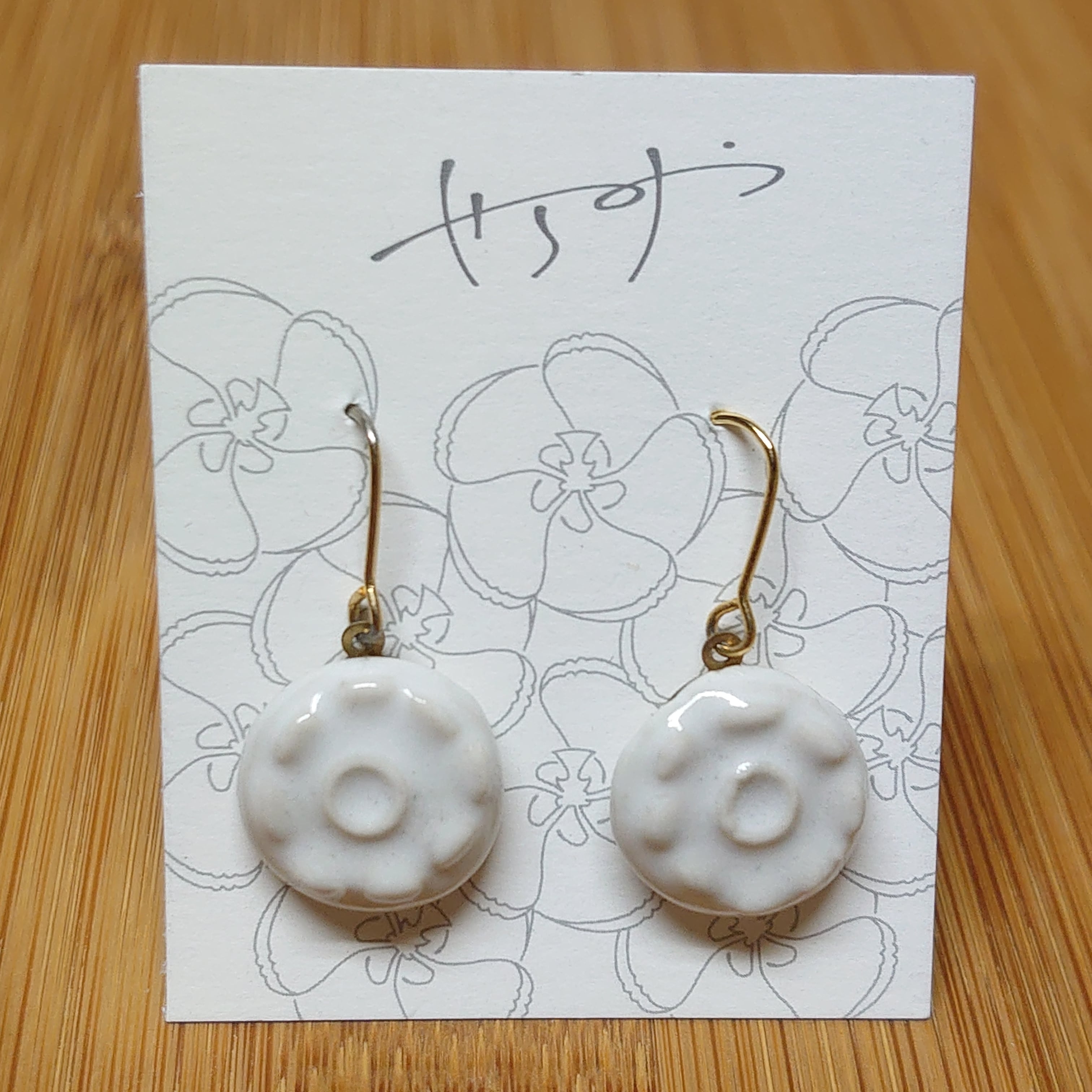 【ふわりふわり綿雪】押型まる陶器ピアス